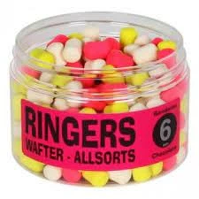 The Ringers Pellet Wafters are available in Mini ,6mm & 8mm,10mm sizing and take form in a classic dumbell hookbait shape. This means the wafers are perfect for banding or hair rigging.