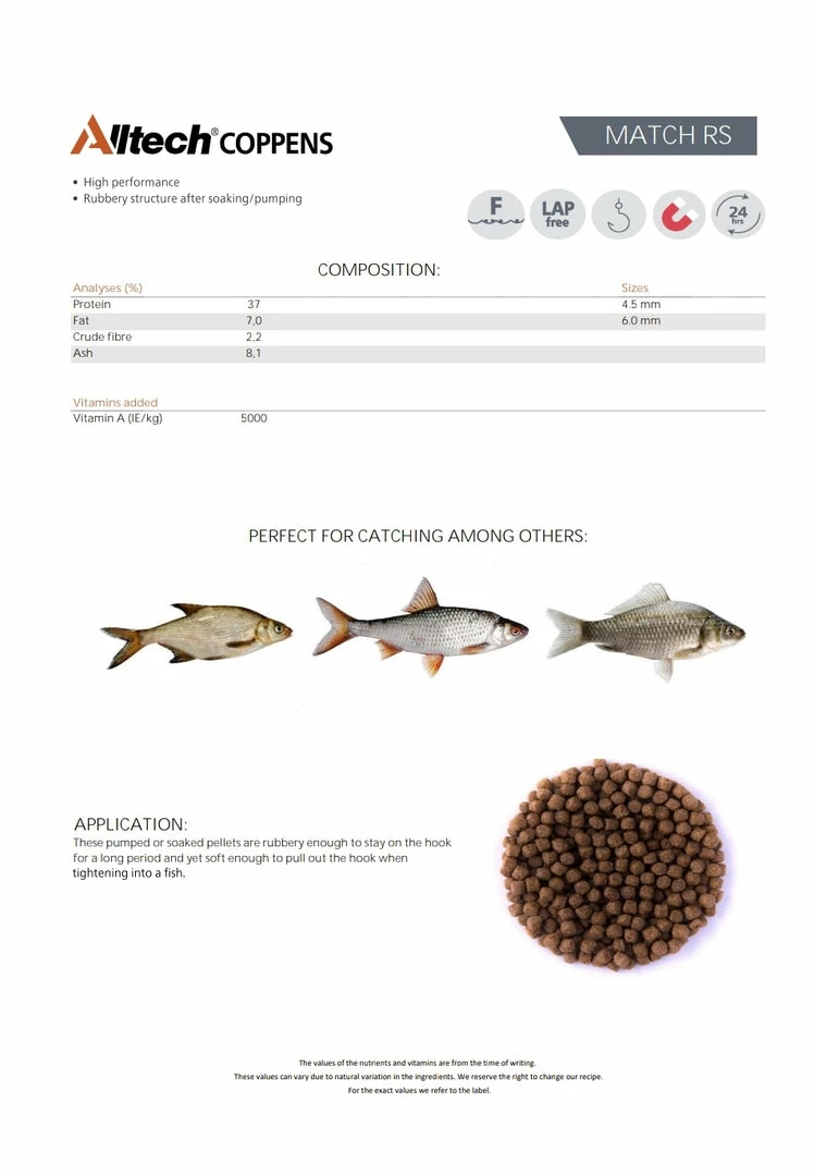 | Size | Coppens Match RS 4.5mm 1kg, Coppens Match RS 6mm 1kg |