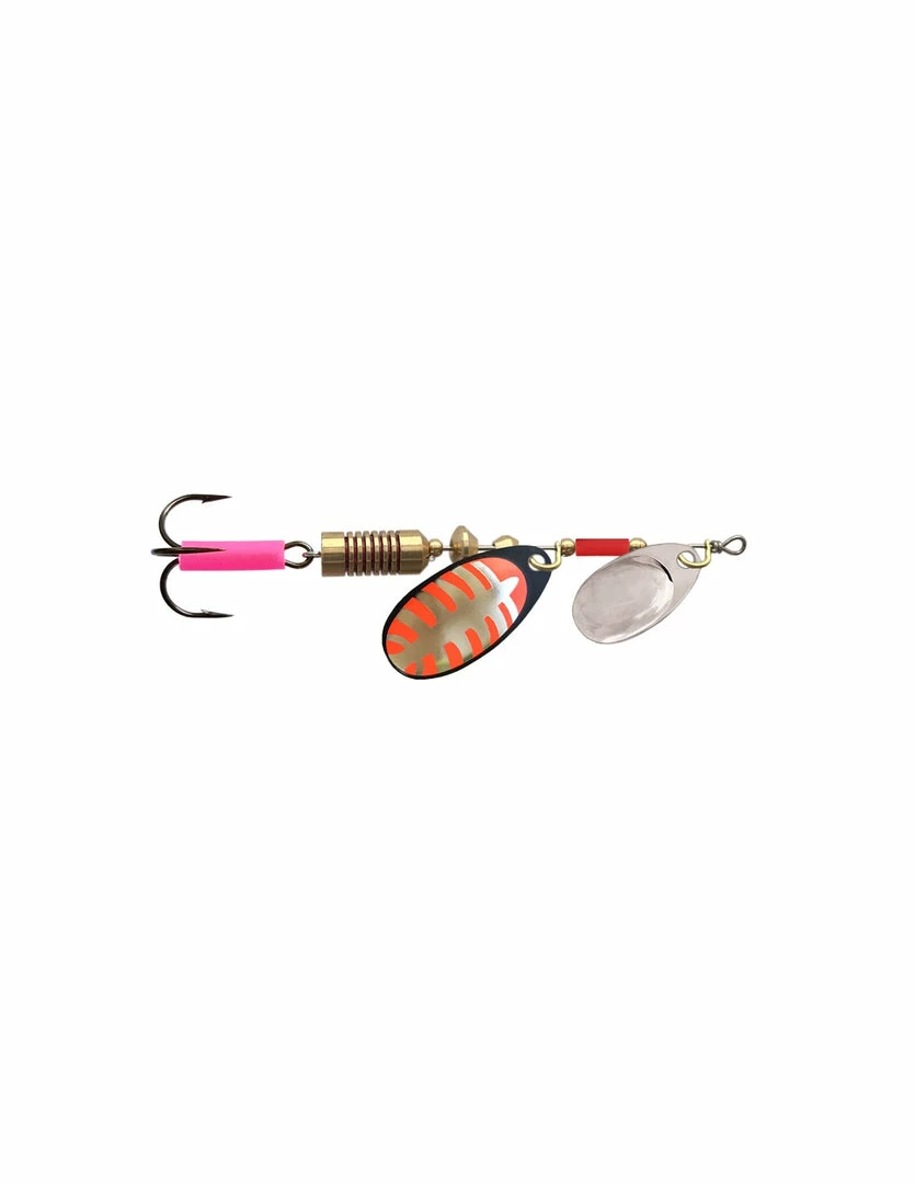 High quality spinners in fish catching colors and sizes! Swedish stainless steel shaft, silver plated solid brass blades and machined solid brass bodies, finished with VMC hooks.