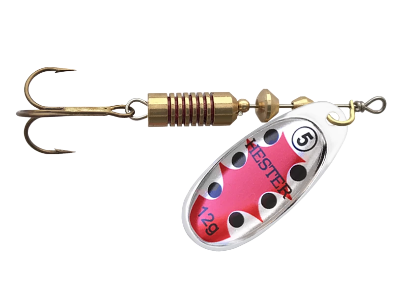 High quality spinners in fish catching colors and sizes! Swedish stainless steel shaft, silver plated solid brass blades and machined solid brass bodies, finished with VMC hooks.
