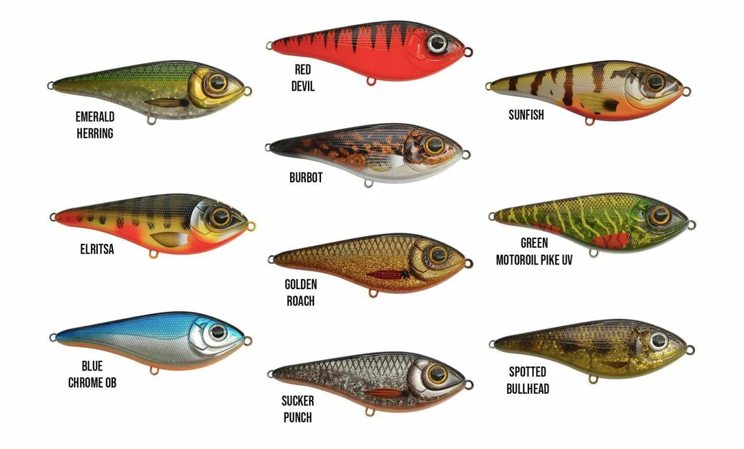 Designed to have the swimbait S-motion action when retrieved and in every pause it will glide out to flash its sides and shiver as it sinks. A deadly combination that comes equipped with 2/0 treble hooks and a durable construction. Buster Swimbait is lead free, available in 10 colors, is slow sink and measures 13cm. The weight is 65g.