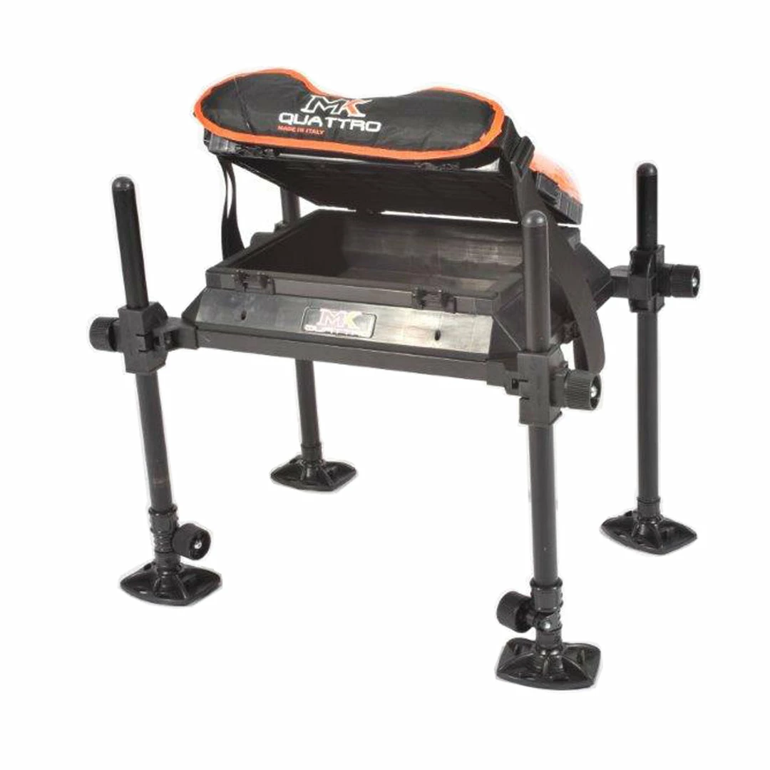Supplied with 4 legs 50cm long and D30mm round (fixed rear and telescopic front), carrying strap, memory cushion(color gray) and a 8cm store compartment under the seat, this is the lightest seat box from MK Quattro only 6kg.