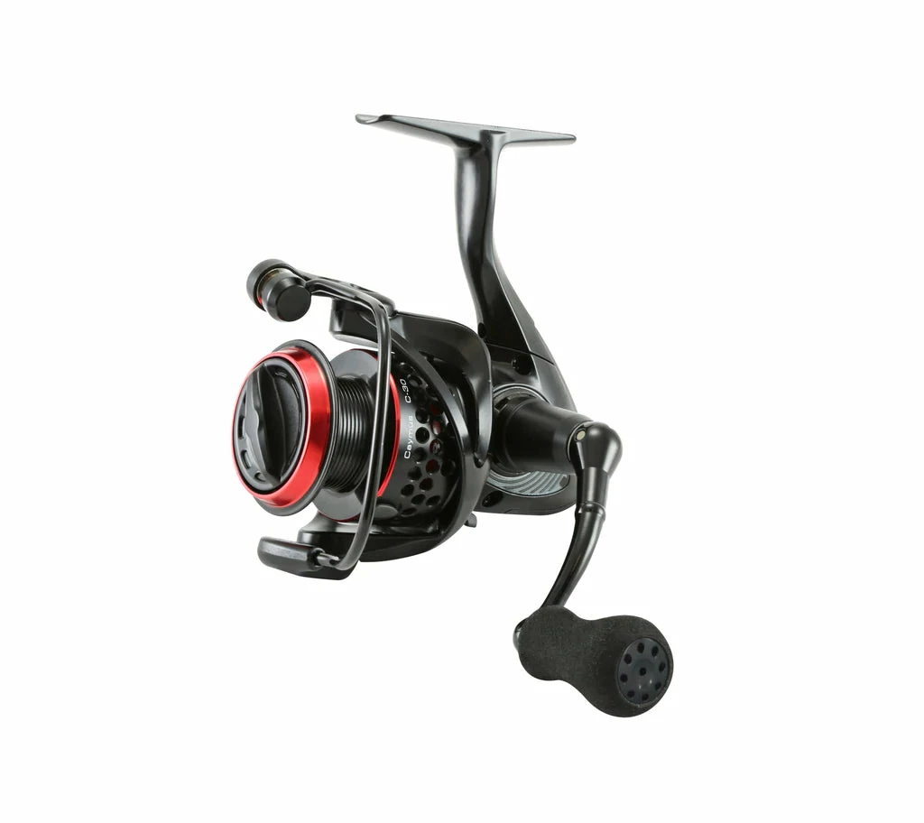 In the Okuma tradition of creating gear that creates a desire to go fishing, the all-new Ceymar spinning reel delivers stunning engineering at very favorable price level. With its ultra-lightweight, aggressively ported spool and rotor and red on black styling, Ceymar makes a statement on the water. Backing up the fierce look is a core of excellence: 8-bearing system including Quick-Set anti-reverse, machined aluminum spool, Blade Body Design, forged aluminum handle, EVA handle knobs and a up to 18-pounds of max drag. Available in sizes C-30, C-40 and C-55, Ceymar takes on all mid- to heavy-duty freshwater applications.