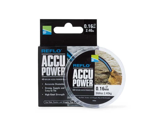 A super high-tech line manufactured from a extremely durable monofilament. Accupower is true to its name with every diameter being accurate to its stated size making it the ideal choice for rigs and hook lengths. Available from size 0.07 – 0.22 there is a diameter in this range to cover every discipline, wether it be commercail carp fishing or silver fish fishing.