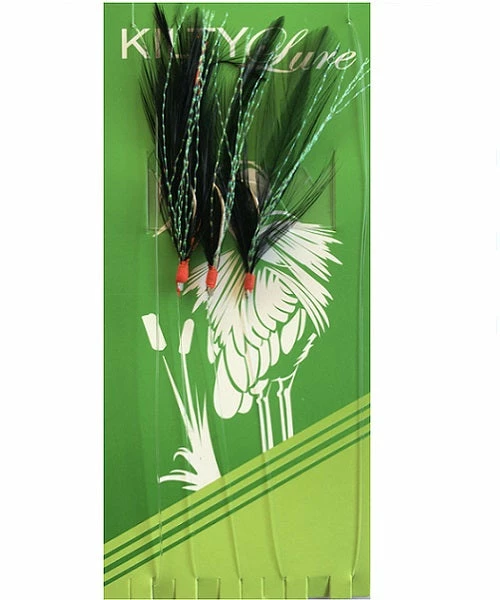 Kilty Mackerel P/N Feathers Black. This popular mackerel paternoster is mostly fished at depth and is available in 3 hook and 6 hook options. As with other Kilty Feathers holographic flashabou has been tied into each feather. Mounted on 3 No 1/0 hooks.